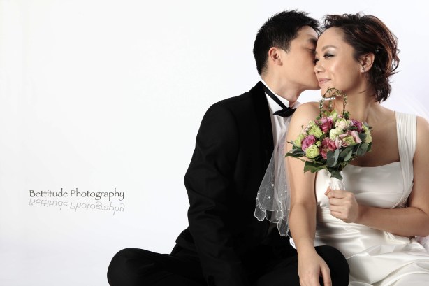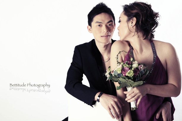 Taking pictures for Connie & Sean was like having a party!ย Rock music and drinks were never missed outโฆUnlike other pre-wedding portraits which takes outdoor, Connie is particularly fond of studio where they could have bunch of ideas bringing into the pictures.ย Connie & Sean told me they just need a few standard wedding portraits for formal reception in US, aside from these rest of the pictures were ideas popped up during the shot.